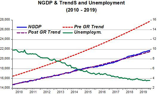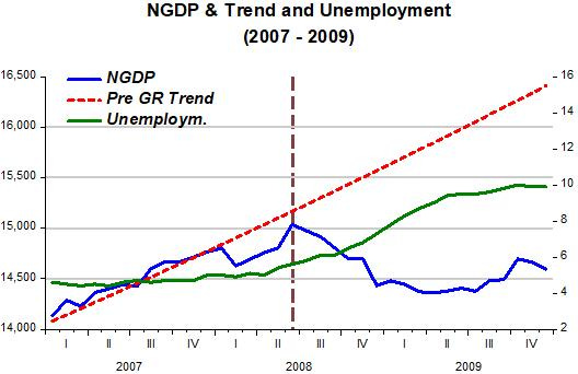 Going into the Great Recession (GR), the Fed let NGDP fall way below trend over a period of several months. Unemployment went to 10% over this period.