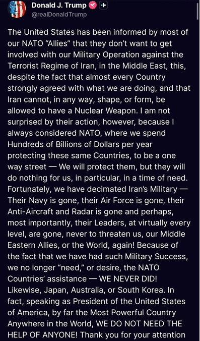 The incoherence is not subtle. Within the span of days, the Trump administration has declared victory, admitted it needs help, alienated the allies whose assistance it now requires, and begun soliciting that same assistance from strategic adversaries — China, of all countries — to help secure a waterway that American airpower has theoretically dominated for eighteen days.