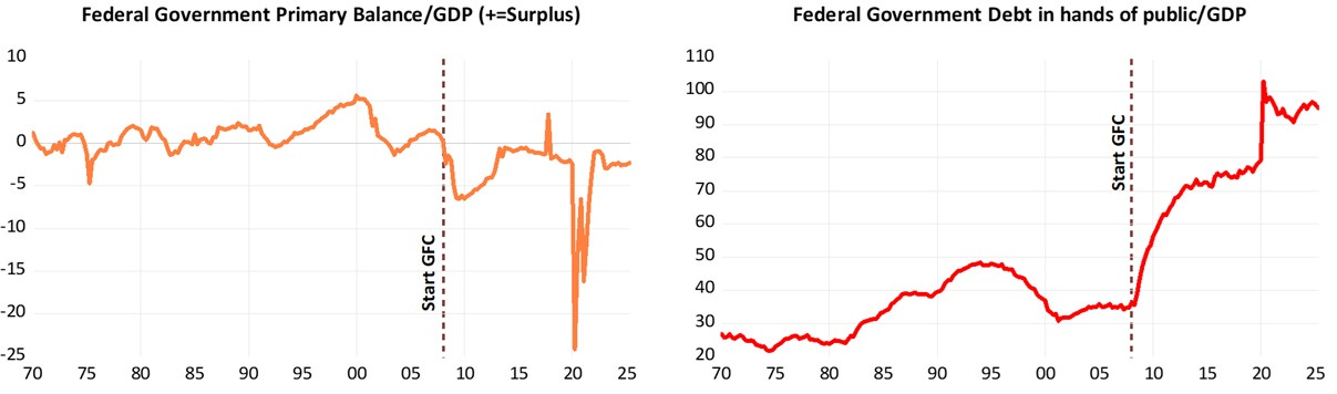 First and foremost among these threats is the trajectory of US fiscal policy. The national debt has grown substantially as a percentage of GDP, driven by recurring deficits that show no signs of abating.