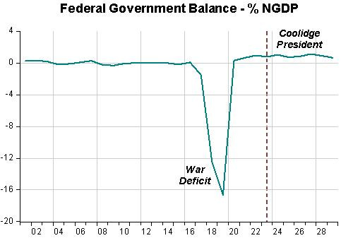 The prosperity of the 1920s appears much like prosperity of the “Great Moderation” where a supply-side focused fiscal policy enhanced productivity was combined with a loose monetary policy guided by an emphasis on price level stability provided a toxic mix leading to a significant boom-bust cycle. Should be a cautionary tale for those enamored by the promise of nominal gdp targeting.